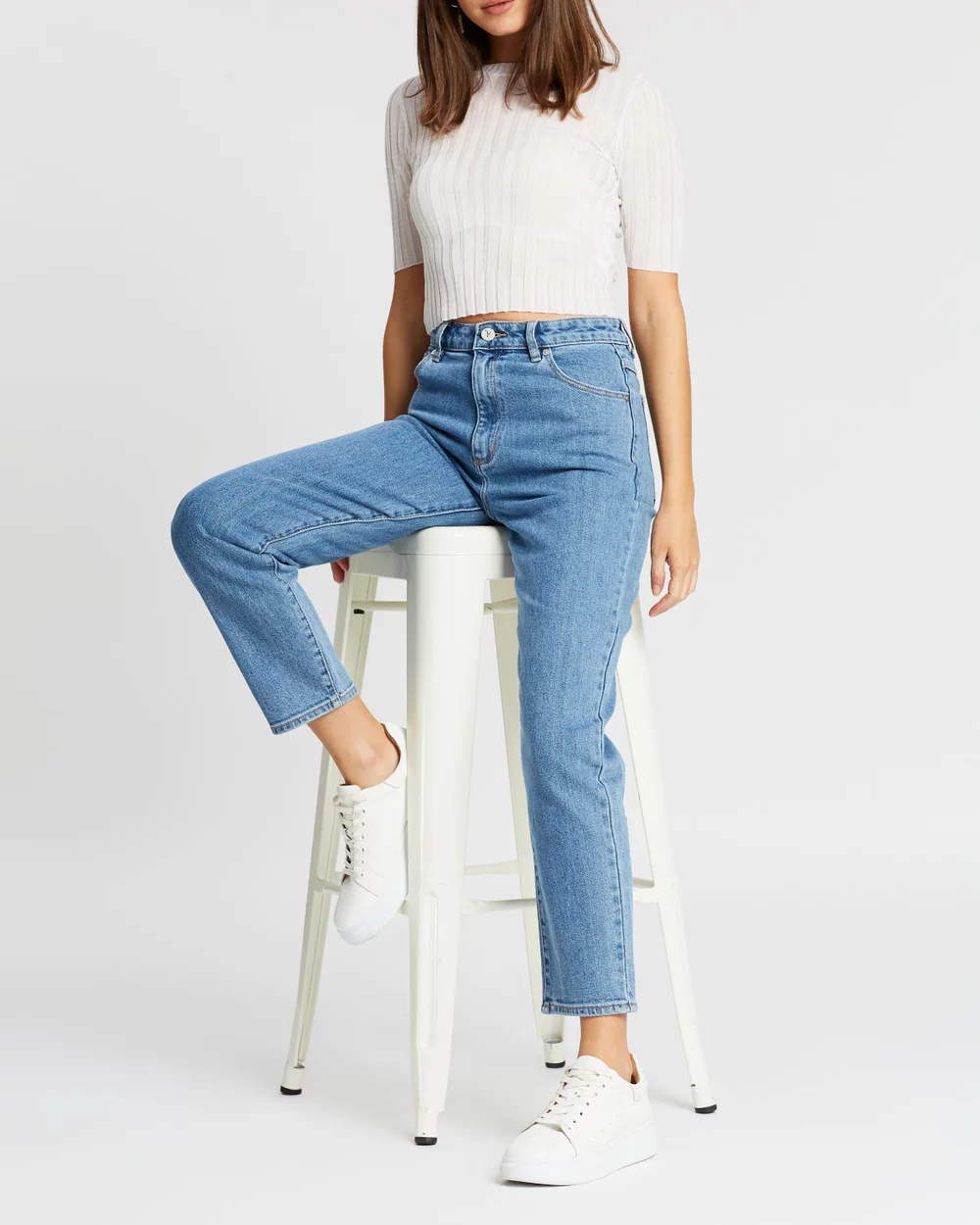 Our model is wearing size AU 8 jeans. She is 167.6cm (5’6”) tall with a 80.0cm (31.5”) bust, a 59.7cm (23.5”) waist and 83.8cm (33”) hips.