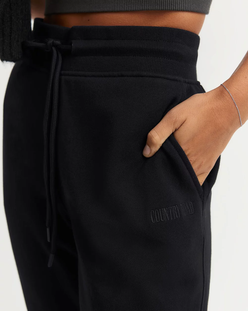 – Embroidered logo at leg
