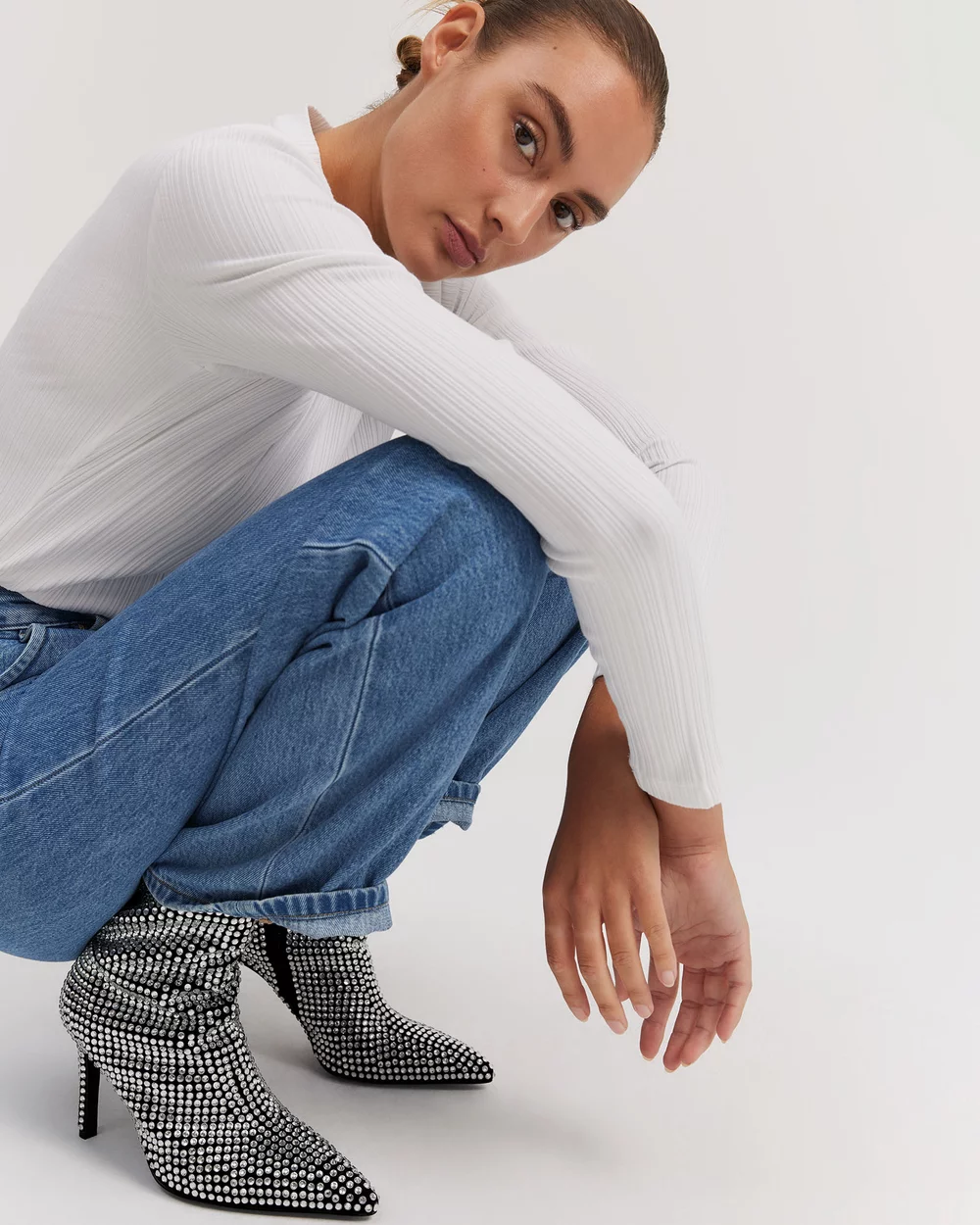 Our model is wearing a size AU XS/8 and is 176.0cm (5’9″) tall with a 95.0cm (37″) bust, a 65.0cm (26″) waist and 90.0cm (35″) hips.