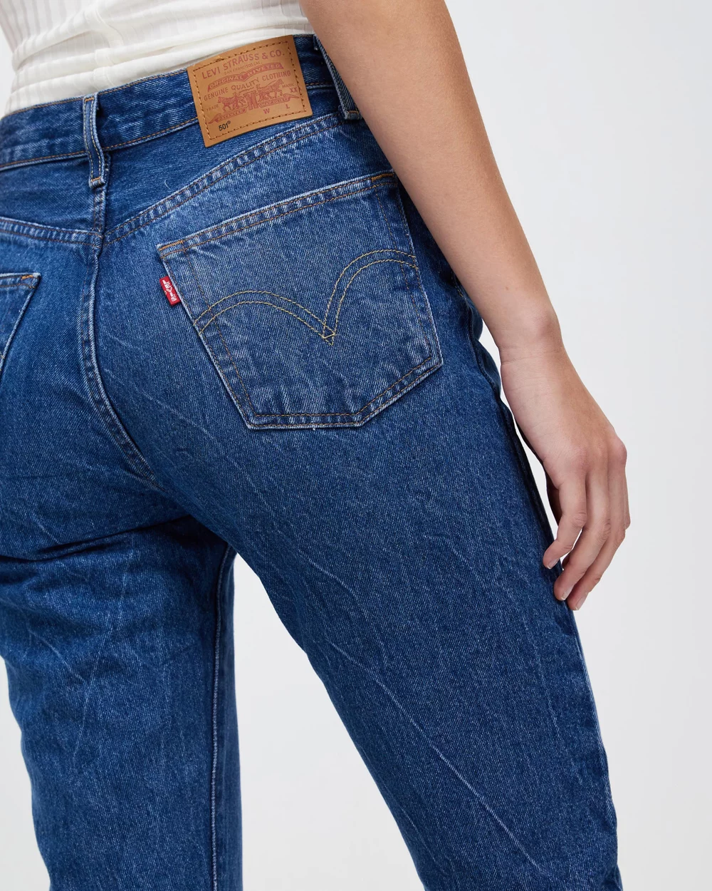 – Arcuate top-stitching to rear patch pockets