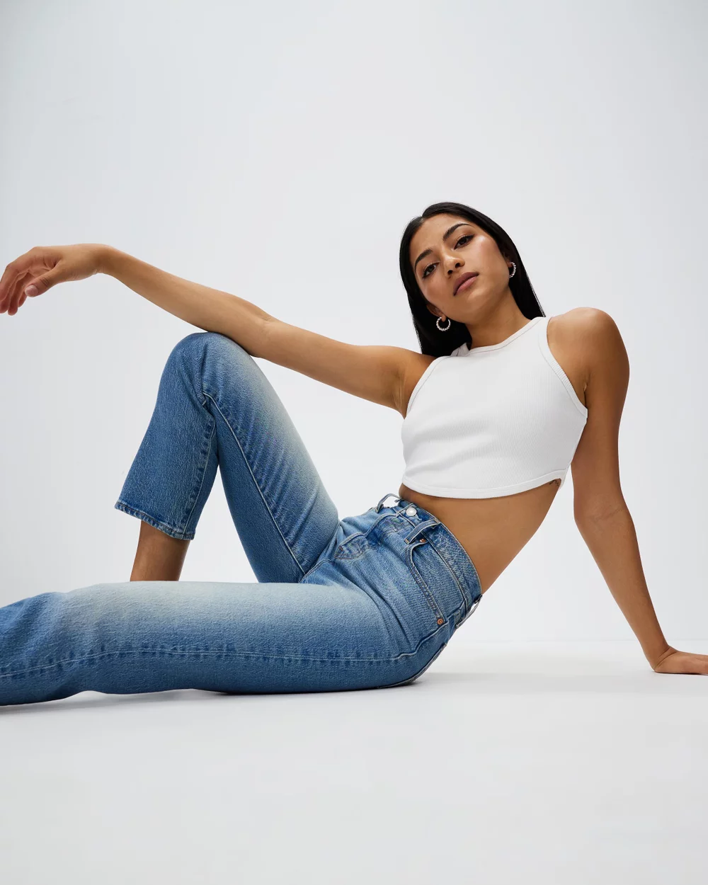 Length: Inside Leg: 67cm; Front Rise: 26cm; Leg Opening: 34cm (size 26). Our model is 172.7cm (5’8”) tall with a 81.3cm (32”) bust, a 66.0cm (26”) waist and 96.5cm (38”) hips.