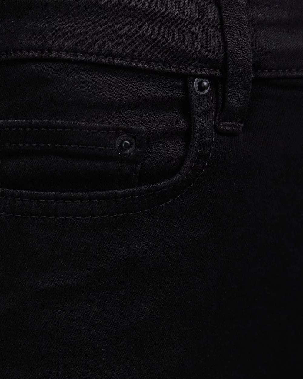 – Mid rise waist with belt loops and black button fastening